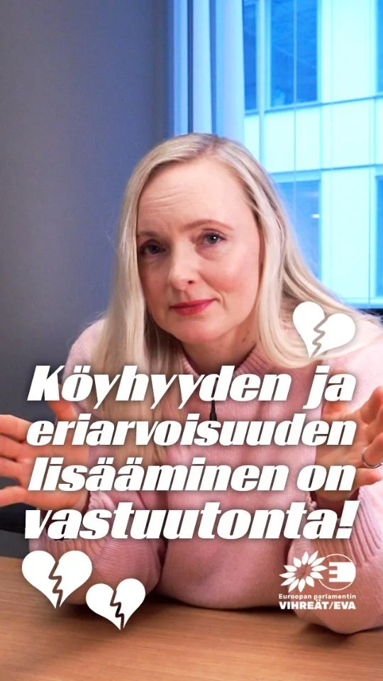Euroopan unioni on monessa suhteessa vedenjakajalla: miten päättäväisesti tartumme ilmastokriisiin ja luontokatoon, miten vahvistamme ihmisoikeuksia ja hyvinvointia meillä ja muualla ajassa, jossa Euroopassa on sota, pohdinnassa EU:n laajentuminen ja edessä akuutisti oikeusvaltion pelastaminen ja eurooppalaisten yhteiskuntien rakentaminen kestävämmiksi? Köyhyyden ja eriarvoisuuden poistaminen yhdistettynä ilmasto- ja luontokriisien torjuntaan on poliittisen työni ytimessä.